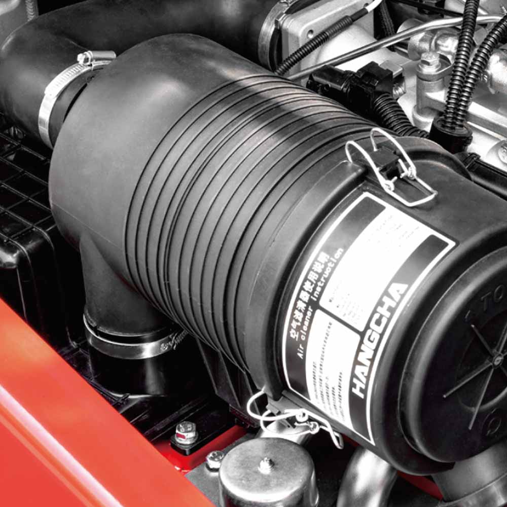 The vehicle has an optimized layout design, reduced front overhang, lowered center of gravity and improved stability of the entire forklift. The new channel steel, ultra-wide-view mast and lowered dashboard in the cab broaden the front view of the driver significantly. Profiled steel overhead guard features high strength with good sealing of the cab.