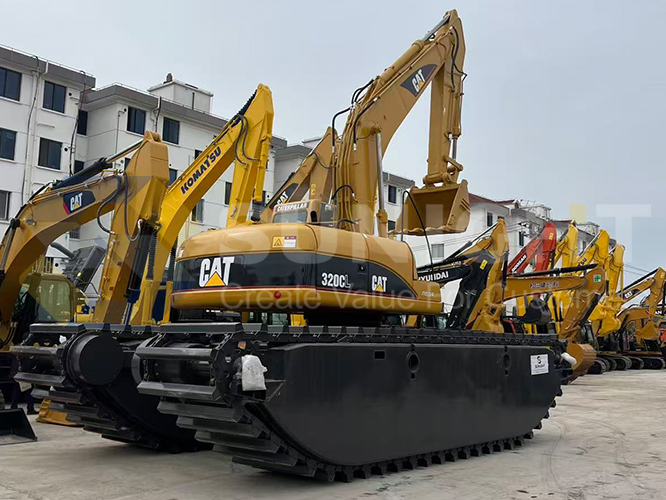 Deep Water Dredging: Ideal for dredging rivers, lakes, and canals, this excavator excels in deep water tasks. Its amphibious design allows it to operate effectively in deeper water, efficiently removing sediment and debris to maintain and expand waterways.