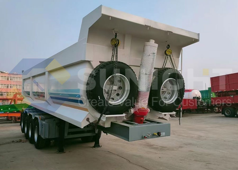 SUNIGHT Dump Trailer is the main product of our company. It use high strength full thickness Steel, titanium content of 0.98‰, which ensure Beam and frame's Toughness and strength. The strong Loading Capacity, 30-100 Tons Loading Range.