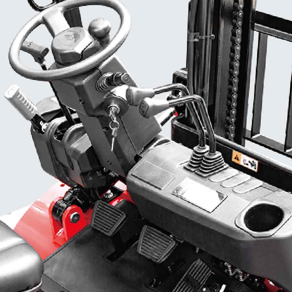 The semi-enclosed instrument console make the entire forklift look compact and stylish. |